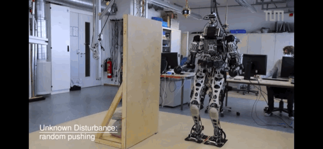 想要双足机器人手臂扶墙移动还保持平衡,并不是看上去那么简单。因为这种情况下,机器人自身形成了超静定结构,在完成手臂扶墙后的瞬间,机体的受力结构发生了巨大的变化,想要继续保持平衡,便需要重新核算。