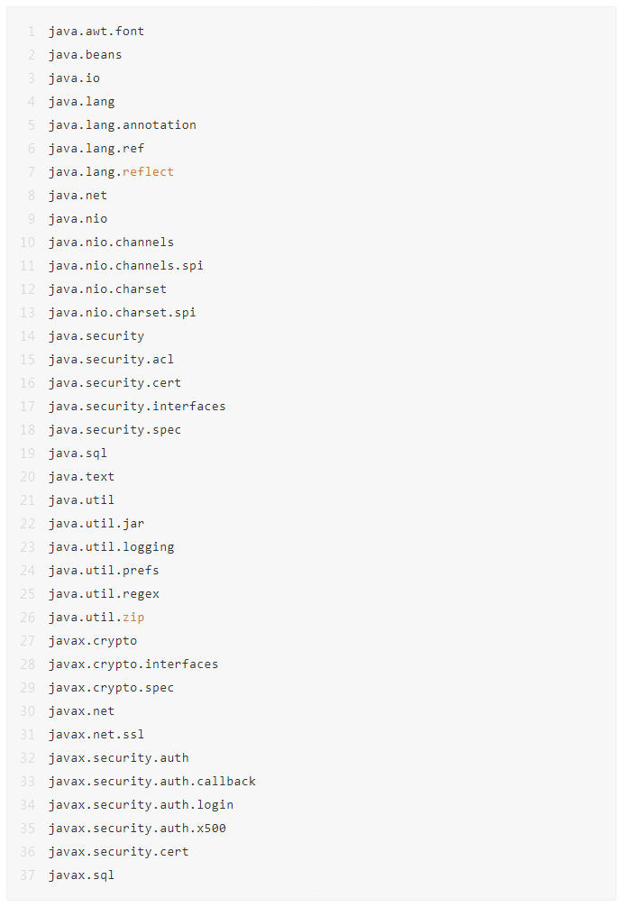 甲骨文起诉提及的 37 个 API 如下: