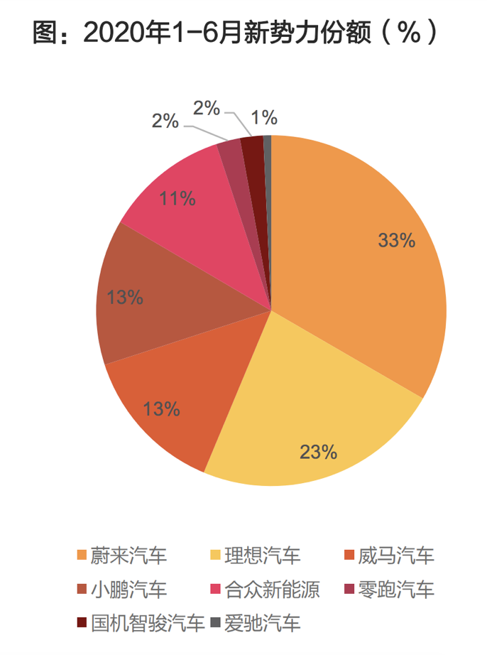 值得注意的是,300多家企业中的大部分都已黯然离场,目前有销量的不超过20家;市场已经明显出现向头部高度集中趋势,蔚来、理想、威马和小鹏等处于绝对领先地位,2020年1月-6月四家企业销量占国内新势力造车企业总销量超八成,留给其它企业的空间非常有限。