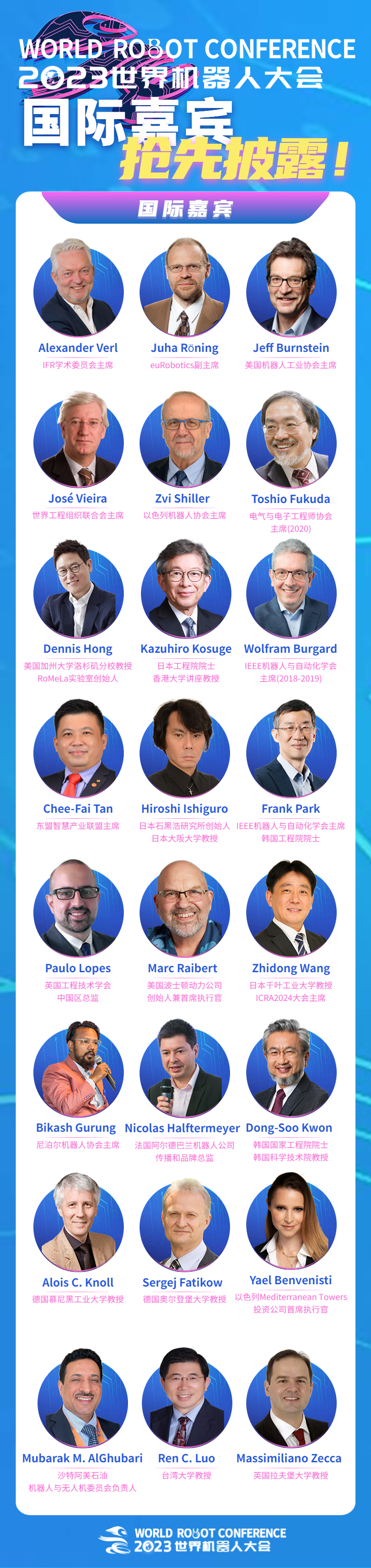 2023世界机器人大会将于8月16日至22日在北京举行,大会以“开放创新 聚享未来”为主题,设论坛、展览、大赛三大板块。自2015年首届世界机器人大会以来,大会主论坛都是国内外顶尖机器人专家、学者、企业家观点碰撞、分享交流的盛大聚会。本届大会同样邀请了包括两院院士、国际机构主席、知名企业家等国内外机器人领域重量级嘉宾参会,同时,今年世界机器人大会再启国际化新征程,时隔三年再次迎来众多国际嘉宾线下出席主论坛,他们有的是世界机器人大会的“老朋友”,有的是首次参加大会的“新面孔”,都将在今年与听众进行零距离沟通和交流,为机器人技术的发展提供更直接、更深入的思考。