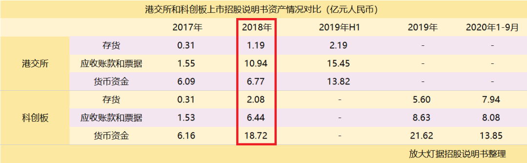 放大灯团队发现,旷视科技的货币资金、应收账款+票据以及存货等关键经营数据,在两地资料均有不同程度的不一致:有些小差几百万,有些相距数亿元。