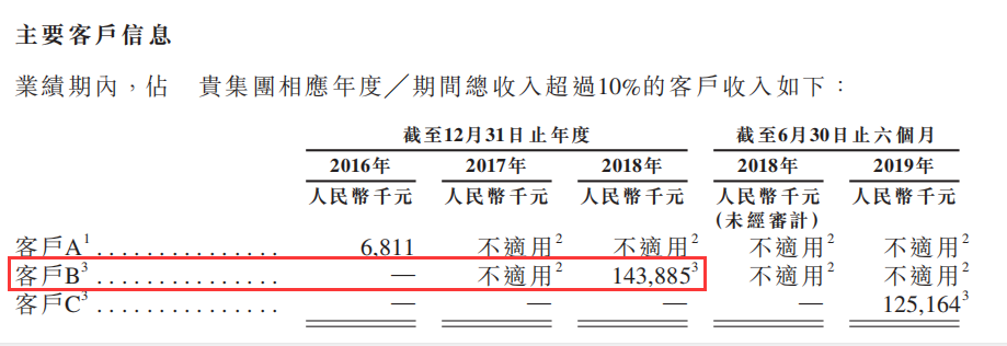 客户也丢了:除了营收神秘蒸发,旷视的主要客户信息也有问题。港股资料中列出了几家占总收入超10%的客户,如客户B,在2018年的采购额高达1.4亿元;2019年上半年,客户C采购额超过了1.2亿元。