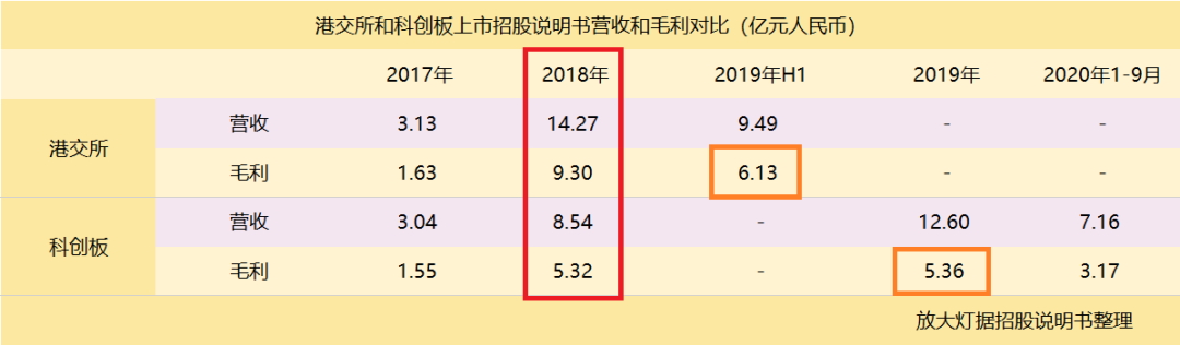 收入消失术:港股招股书显示,旷视在2018年的年度收入为14.27亿元人民币,然而同期数据在科创板招股书上却变成了8.54亿元,将近6个亿收入不翼而飞;相应的,毛利润也丢了将近4个亿——这些都绝非能一笔带过的小数目。