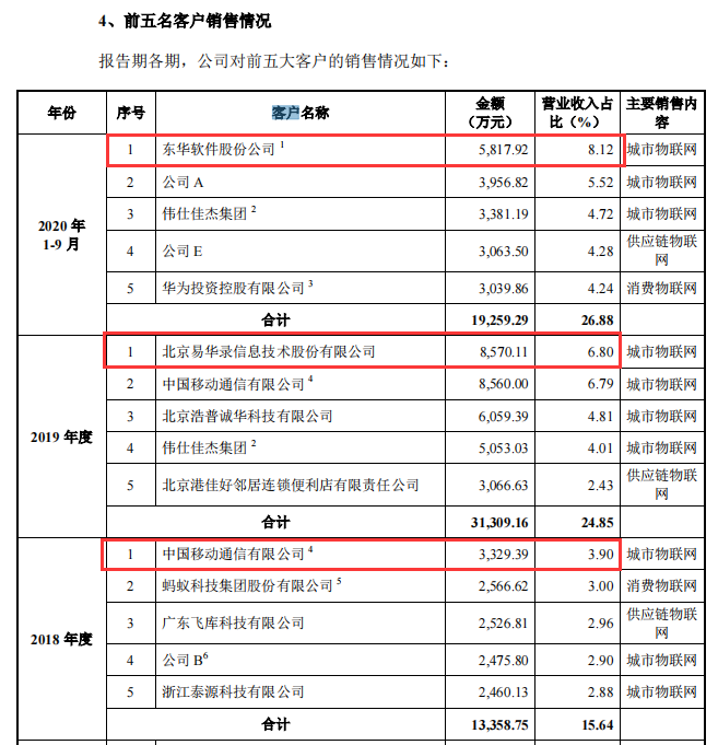 但科创板披露数据却显示,无论是哪一年,旷视都没有销售占比超过10%的客户存在,两组数据无论如何都对不上,这么核心的客户居然来了个“大变活人”。