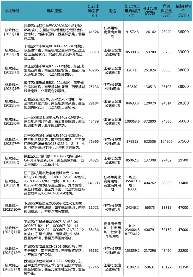 杭州第一批集中供地57宗,体量757万方,总起价934.7亿