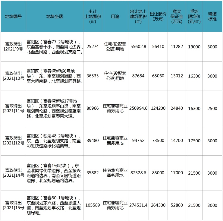 57宗地块中,各地块的具体报价的起止时间有所不同,主城区、钱塘新区和萧山区的地块,开始报价的时间为4月27日,截止报价的时间为5月7日,临安区、余杭区和富阳区的地块,开始报价的时间为4月27日,截止报价的时间为5月8日。