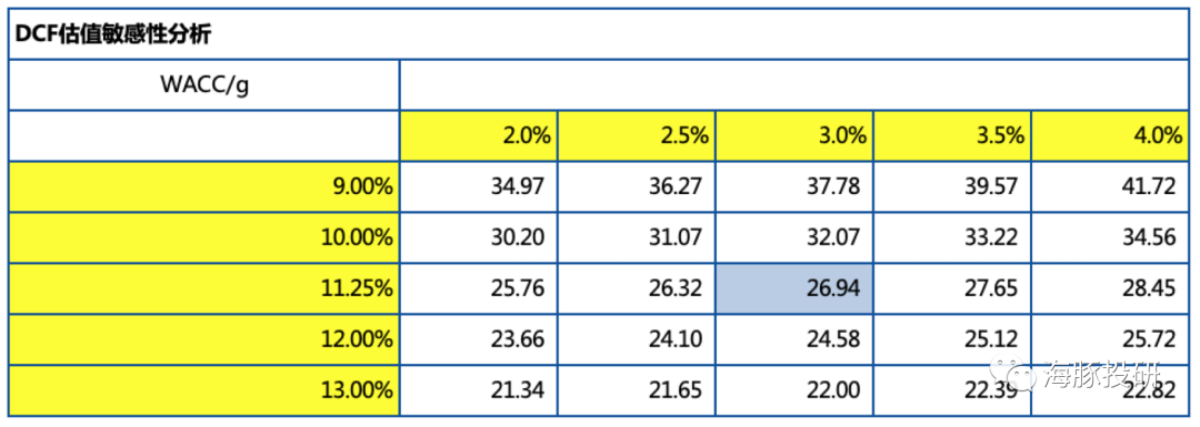 基于以上业务增长预测,在DCF估值方法下,按照WACC=11.25%,g=3%的假设,腾讯音乐对应市值约456亿美金,合27美元/股。