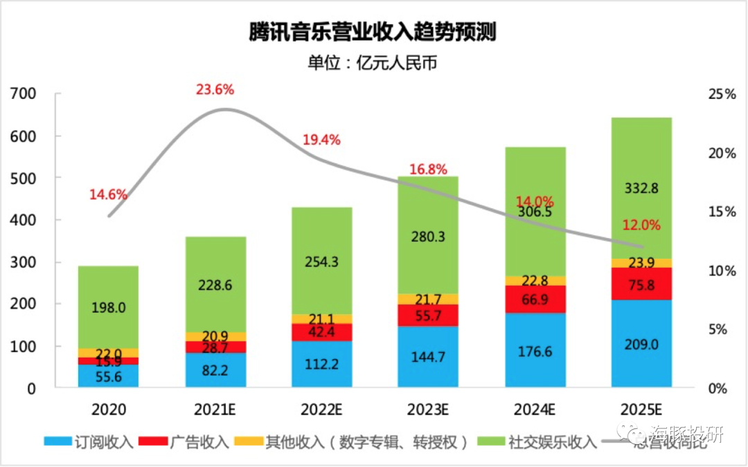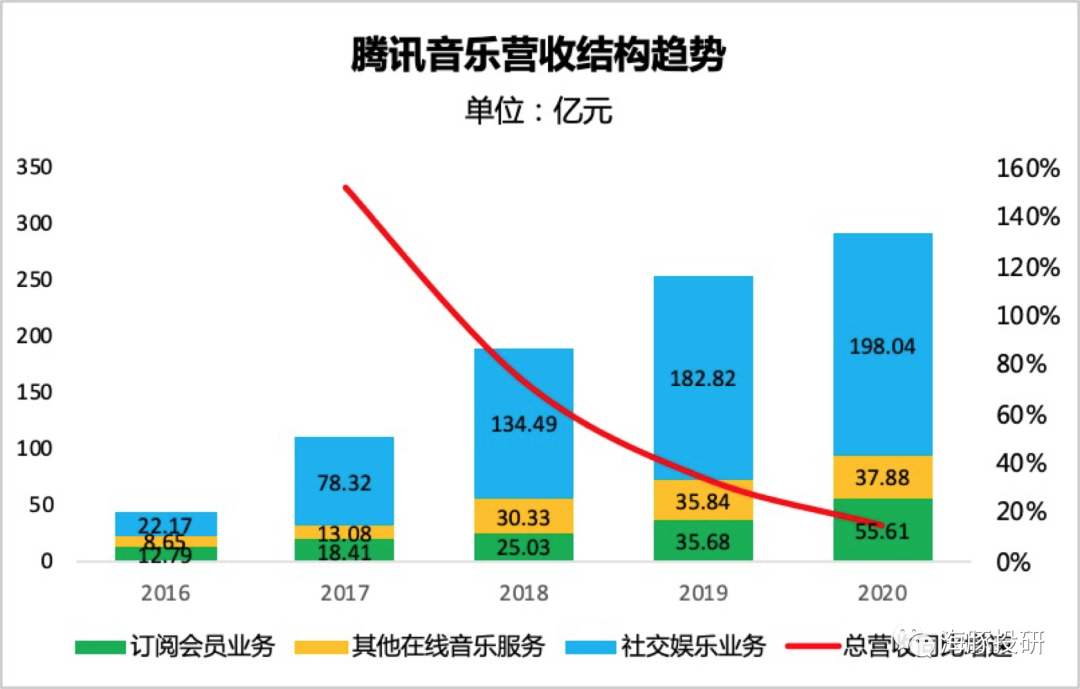 要给腾讯音乐做价值估算,首先需要弄明白,从基本面上看,腾讯音乐的业绩主要靠什么支撑。