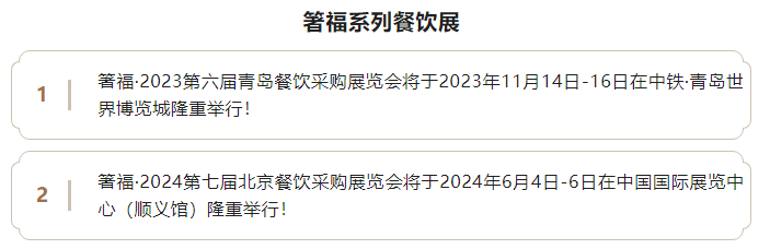 箸福餐饮采购展是目前北方地区餐饮行业的旗舰展会,汇聚了餐饮行业全产业链、全品类的企业和产品,经过六年精心培育形成了“展”+“会”+“赛”+“奖”+“直播”的展会格局。展会参展产品涵盖:预制菜、火锅、烧烤、食材、冷冻食品、调味品、水产、面点、果蔬饮料、餐饮设备等全产业链、全品类!未来展会将继续在领域内不断开展采购商推广、邀约活动;深耕市场,高效架通展商与采购商之间的桥梁纽带,为餐饮企业搭建交友、学习、交流、宣传、销售的互惠互利共赢平台,成为覆盖全国餐饮行业贸易的盛会!