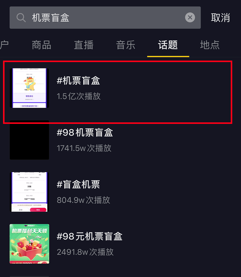 随着“机票目的地盲盒”引爆社交媒体,4月3日,微信指数“同程旅行”的搜索热量日环比增长超过318%,“盲盒”搜索量日环比增长超过435%,网友自发在抖音上发起的“机票盲盒”话题,现话题播放量已经近1.5亿次。