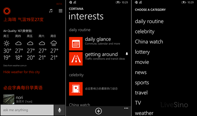 2014 年 4 月,微软在 Build 开发者大会上推出了 Cortana (小娜),它的首发平台是 Windows Phone 8.1,也就是手机移动端,并非 PC 端。不过微软对它的定位可不只是单纯的语音助手,而是「智能个人助理」。在我看来,这两者的区别关键在于主观能动性上,首次启动小娜时,她就会主动了解你的信息,比如称呼、家庭或公司地址、喜欢的明星、关注的新闻领域、出行安排等等,把这些信息整合起来,小娜会适时给出你建议。