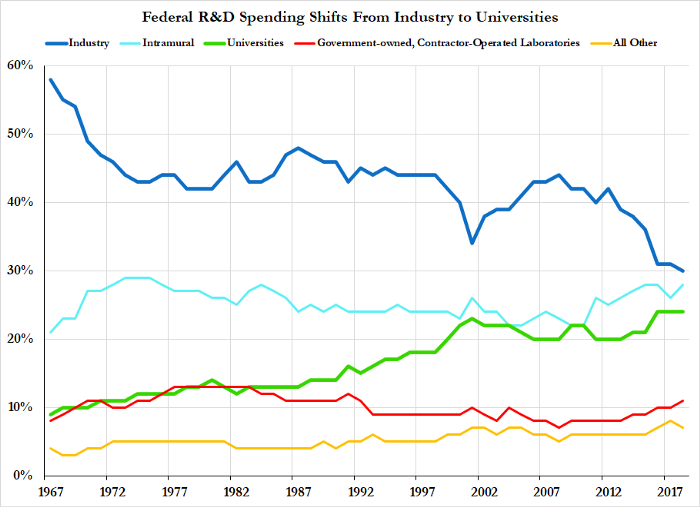 这个行业当前存在的问题是科学政策长期走势的自然结果,尽管它在1990年代末和2000年代初曾经是那么的成功。学术实验室从事长期研究,庞大的“冠军企业”,以及轻资产的“无晶圆厂”的创新者,聚焦在这种格局的合并与垂直整合,推动形成了一个摇摇欲坠的竞争生态体系。