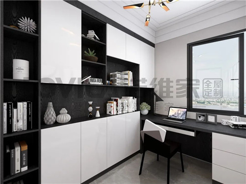 一眼望去,富有设计感的椅子打破了书房的沉闷,半开放式书柜将书籍收纳的井条有序,在窗台上打造一张书桌,可以在办公的同时,感受着阳光的温暖,既温馨又舒适。