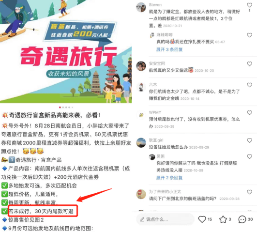 当然,从部分网友的吐槽来看,机票盲盒玩法也还存在不少需要改进的问题。