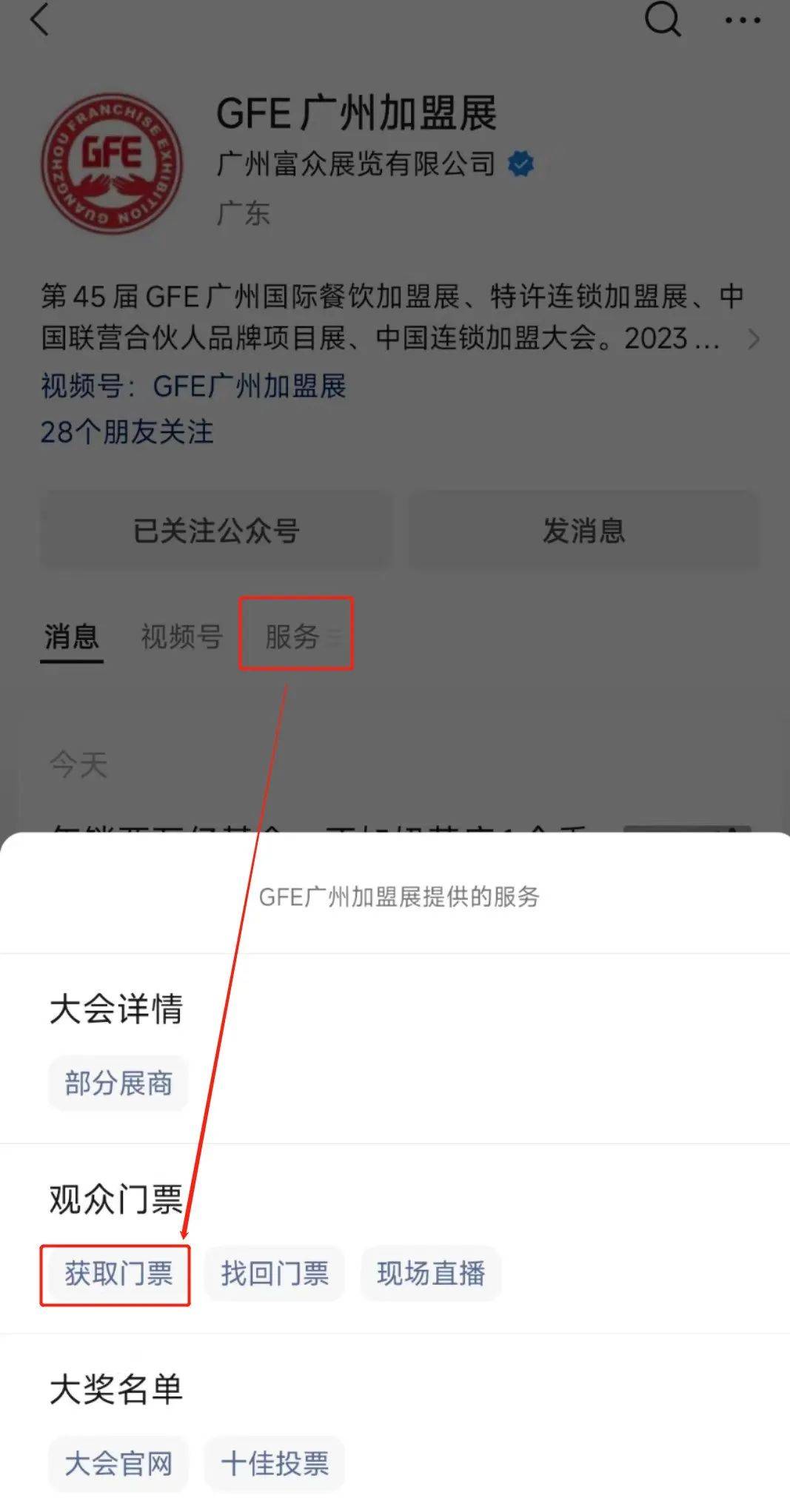 关于观展,需要大会观众登记注册码+身份证,方可入场参观。免费领票GFE广州加盟展,观众线上报名通道已经开启:关注LSJMZH微信公众号(GFE广州加盟展),在【服务】里的【观众门票】,点击获取门票去登记预约。限时免费,每一个参展的观众登记一次,全展期通用。