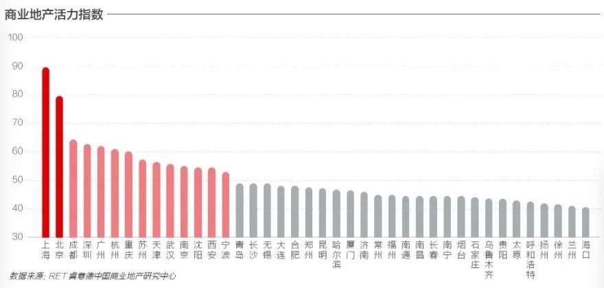 以与便利店“深度绑定”的商业地产为例。根据2017年RET睿意德发布的《中国商业地产活力40城》报告,七座城市的商业地产活力指数在40座城市中普遍居于10至20位的区间。其中,沈阳、西安分别居于12、13位,长沙、大连、合肥、郑州则位于16、18、19、20位,当时四市得分均未达到50分。