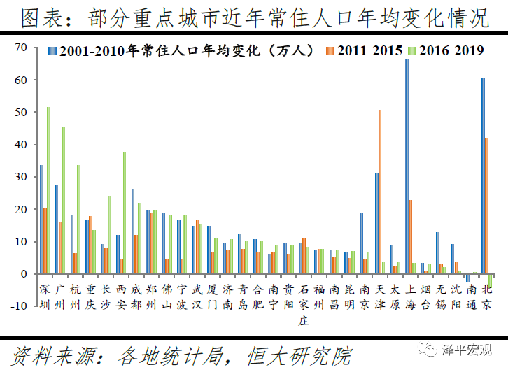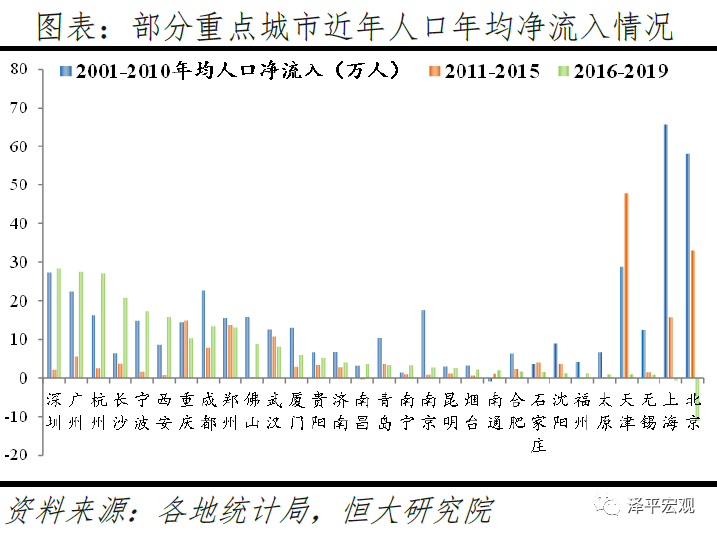 比较重点城市2016年至2019年间的人口年均净流入数量,排名靠前的“人口吸引力强市”不仅有深圳、广州、杭州等沿海城市,长沙、西安、郑州等内陆城市亦跻身前十。