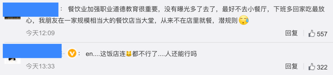 视频发出后,引发网友讨论。有网友表示“绝对不止这一家,好多连锁店估计都这么干,更别提小作坊外卖店了”、“en....这饭店连猫都不行了....人还能行吗。”