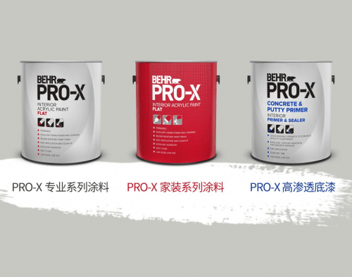 PRO-X是百色熊最新研究开发的涂料产品,包含了BEHR PRO-X家装系列涂料和BEHR PRO-X专业系列涂料以及PRO-X高渗透底漆三款产品,以满足客户在室内装饰领域和建筑专业领域不同的需求。