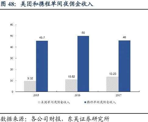 以2017年高星酒店和非高星1:9的比例来说,假设酒店一晚房费为200元,按照10%的佣金率算,美团只能挣到20块。再刨去成本,利润可想而知。