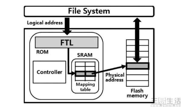 但是这样一来,一个新的问题就诞生了。因为写入的数据在闪存上其实是被拆开、打乱,填充到了许许多多分散开来的位置上了,于是为了数据读取的时候能够准确找到它们,磨损平衡算法就会将每一份数据与它们在闪存上的实际位置进行一个统计,建立一个文件与实际存储位置之间的对应表格,这个表格就叫做FTL,也就是闪存转换层(Flash Translation Layer)。