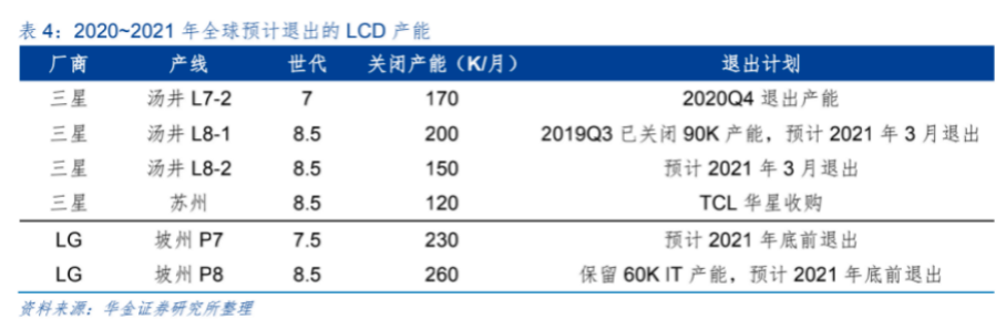 2020 年初,三星曾公开表示将在年底实现韩国本地LCD产能的完全停产,LG也曾宣布年底将P7和P8产线完全停产。这一度导致国内面板类公司股价狂涨。