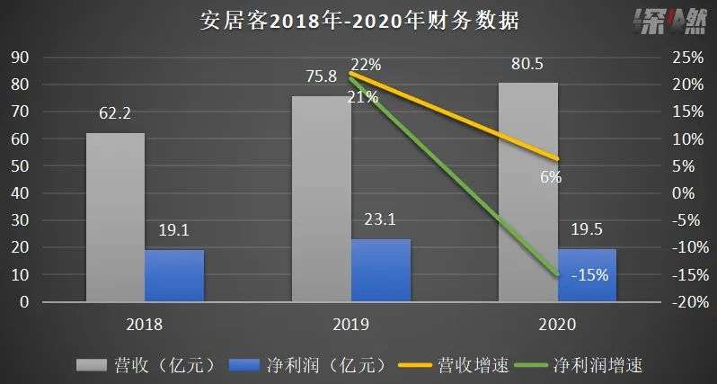 过去三年,安居客一直保持着盈利状态,但2020年无论营收还是净利润,增速都有所下降。2018年至2020年,安居客营收分别为62.2亿元、75.8亿元及80.5亿元。年内利润分别为19.1亿元、23.1亿元及19.5亿元。
