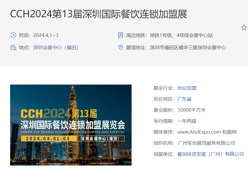 “助力加盟创业,共享连锁商机”。作为餐饮连锁领域的专业盛会,展会始终坚持品牌发展之路,并已落子鹏城成功举办深圳分站,为平台“立足大湾区、走向全中国”迈开重要一步。