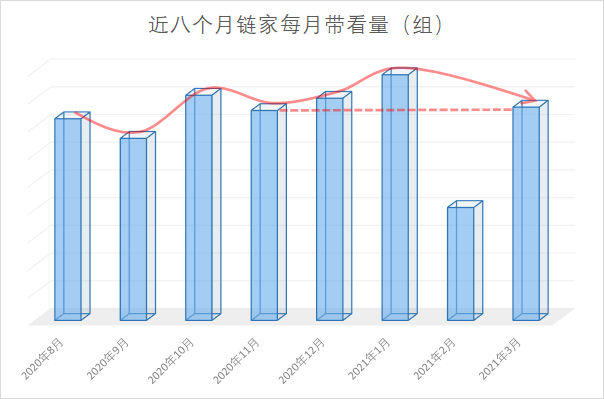 我们看下近几个月二手市场的带看数据,依然不能显示具体带看组数,但是感受下趋势