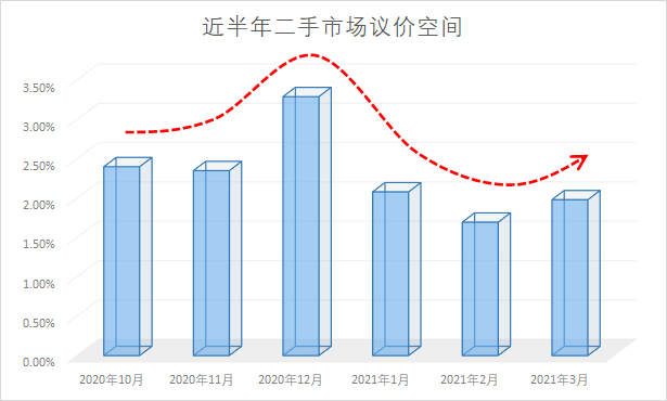 来源:上海链家3月平均下来,每天的议价空间在2.1%左右