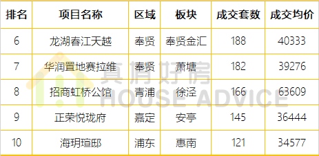 6-10位的除了招商虹桥公馆之外,其余都是刚需的主力单价段及覆盖的热门板块。