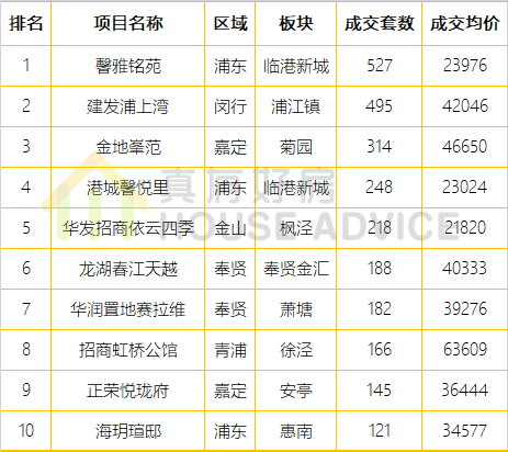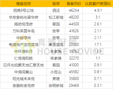 除去 招商虹桥公馆 的单价超过6W之外,其余前十的项目之中,成交量靠前的全部低于5万。