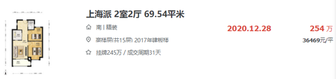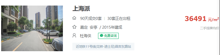 来看看已满五年,地段位置更好的上海派,目前的挂牌均价3.65万,正好就是路劲珑悦府的均价。