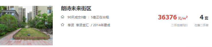 奉贤金汇满五的项目不多,就拿朗诗未来街区来说,目前挂牌价格3.6万,而15年年底当时的价格是1.6万。