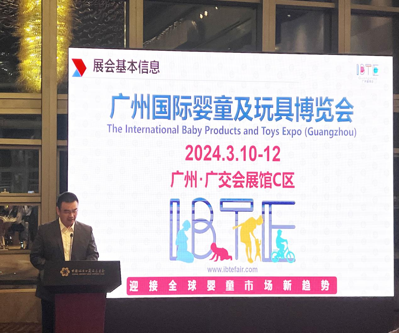 10月24日,IBTE广州童博会主办方举办婴童用品及玩具产业发展交流会。中国对外贸易中心党委书记、主任储士家,中国对外贸易中心副主任徐兵,中国轻工工艺品进出口商会会长王忠奇、副会长张杰,广东省商务厅副厅长孙斌,江西省商务厅二级巡视员陈志民,以及全国21个主要婴童用品及玩具产地的商务部门负责人约60人参加交流会。