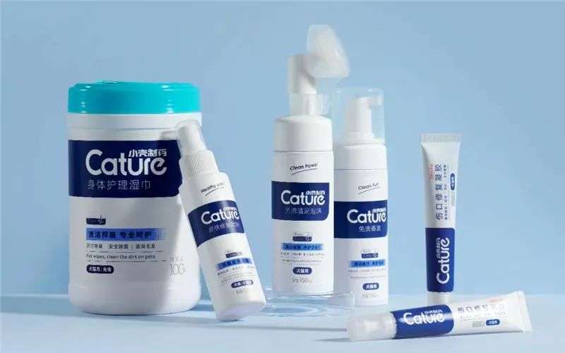 Cature小壳则从原木猫砂切入宠物护理市场,目前已逐渐扩展至口腔护理、身体护理场景、消毒祛味等多个场景,产品包括了宠物牙刷、漱口水、洁牙粉、洗耳液、免洗洁足泡沫等,在去年初获得了近2000w的A轮融资,并建立了宠物护理产品自研实验室CatureLab。
