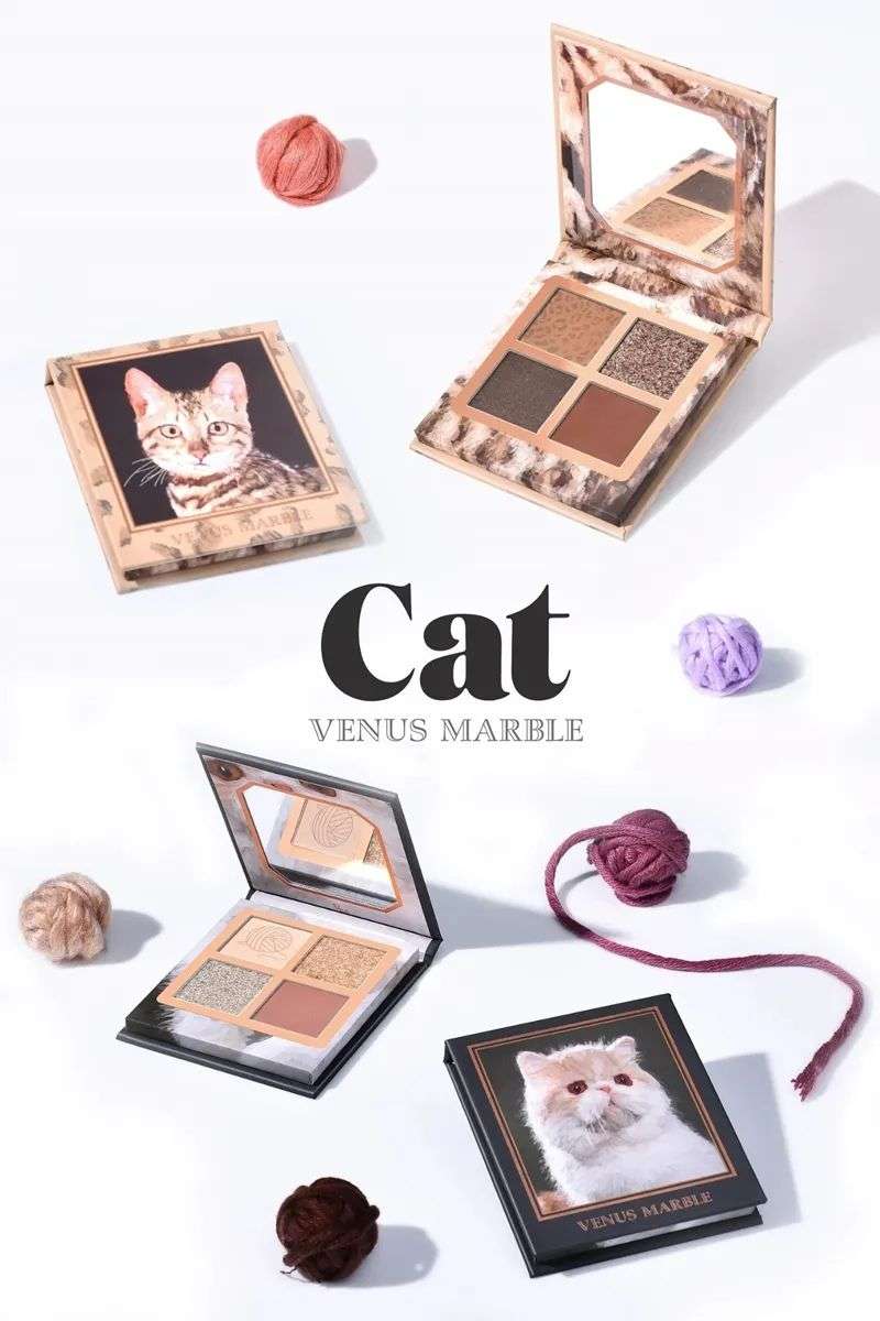 而在美妆界,新锐品牌VENUS MARBLE就曾推出铲屎官的最爱——猫系列,分别对应无毛猫、布偶猫、暹罗猫等六只不同品种的猫,去年又新增了加菲猫盘和豹猫盘,把猫的多面性与眼影的玩色特性相结合。