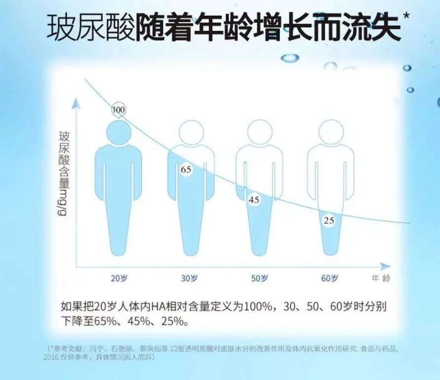 人体每天都在消耗透明质酸,同时也会生成它,只是随着年龄的增加,消耗的速度会大于生成的速度,我们体内的透明质酸含量就会减少,皮肤也会失去很多水分。
