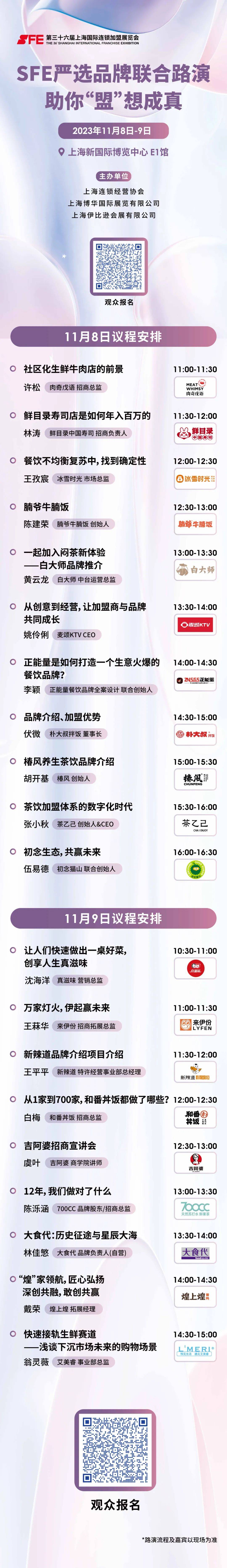 SFE第36届上海国际连锁加盟展《逛展指南》新鲜出炉,入场须知、展商名录、论坛活动...一文全知道~
