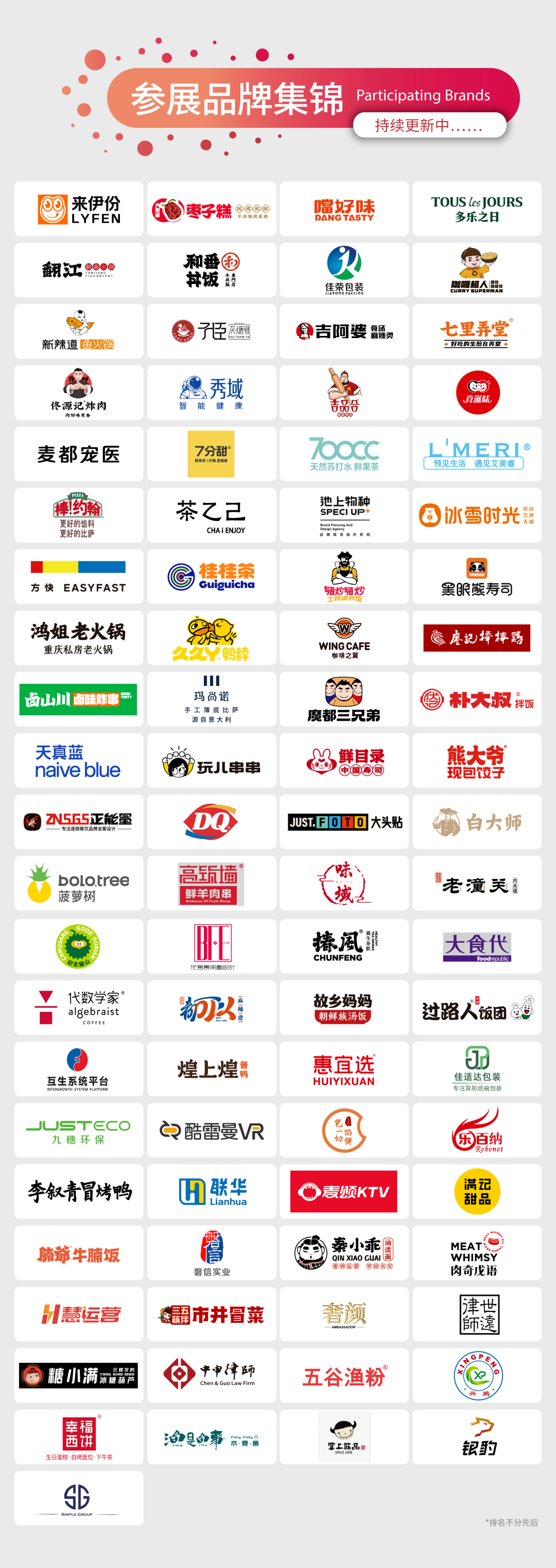 展会汇聚了诸多知名行业优质品牌在现场,既有市场知名度高、模式成熟收益稳定的成熟品牌,也有发展迅速占据C位的新锐品牌,包括久久丫、来伊份、满记甜品、多乐之日、白大师、桂桂茶、廖记棒棒鸡等。