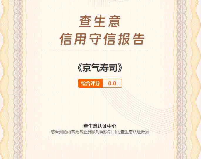 总部配送食材健康质量不合格,京气寿司低合作评分1.13