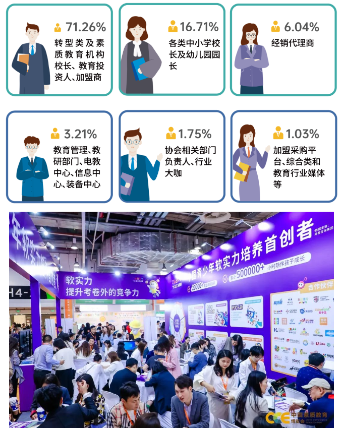 17000㎡+展出规模,300+素质教育品牌,30+同期活动,聚焦素质教育行业热点,全方位展示素质教育全品类产品,呈现一场行业品类丰富、看点内容精彩、体验场景多元的素质教育展会。