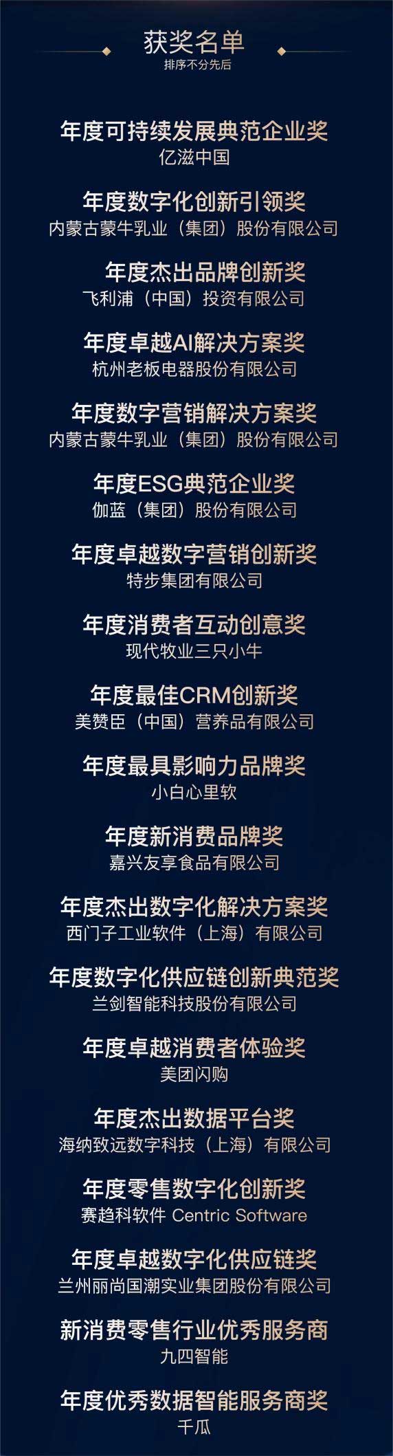 23日上午开幕论坛的最后环节是万众瞩目的CX Innovation 2023年度创新大赏颁奖典礼。CX年度创新大赏由决策者零售研究院发起,旨在表彰在零售及消费品领域有着卓越表现和创新动力的团队和企业,为行业发展树立新的标杆,技术创新提供优质案例,为商务合作引领新机遇。它是对在过去一年中锐意创新、积极实践的团队和企业的鼓励,有利于激发产业创新潜能,促进行业的持续发展。以下是完整获奖名单。