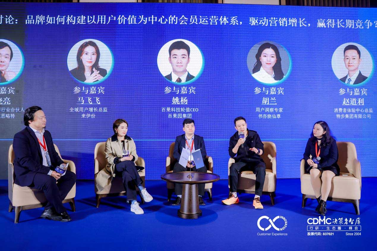 11月23日下午场的主题是“对话·深耕用户运营”,主要探讨消费趋势和用户需求、消费者运营、智慧物流、私域运营、全渠道会员数字化、内容营销与用户互动等相关议题。第一个环节圆桌讨论围绕“品牌如何构建以用户价值为中心的会员运营体系,驱动营销增长,赢得长期竞争?”展开,特邀普华永道思略特消费品与零售行业合伙人华晓亮先生担任主持嘉宾,特步集团有限公司消费者体验中心总监赵道利先生、百果园集团百果科技轮值CEO、鹿鸣数科创始人姚杨先生、来伊份全域用户增长总监马飞飞女士以及书亦烧仙草用户洞察专家胡兰女士一同参与,重点围绕如何选择会员运营管理模式、如何利用数字化工具创造更多用户价值、AIPL消费者全旅程创新,以及企业该如何打破部门墙实现营销服务的协同等议题展开深入交流。