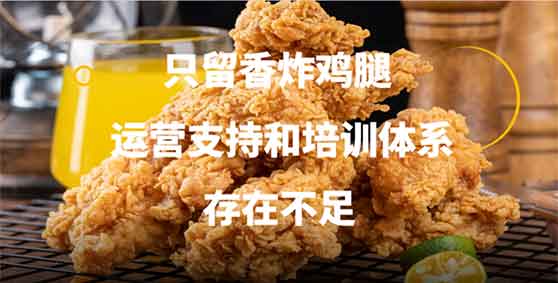 只留香炸鸡腿品牌在宣传中强调对加盟店的全方位运营支持,包括市场分析、店面选址、装修设计、原料采购、技术培训以及后期运营指导等。然而,在实际执行中,许多加盟店反映品牌的运营支持并不到位。一些加盟店甚至在开业后仍存在经营管理不规范、盈利能力不足的问题,这主要是因为品牌方在前期运营支持上的缺位。
