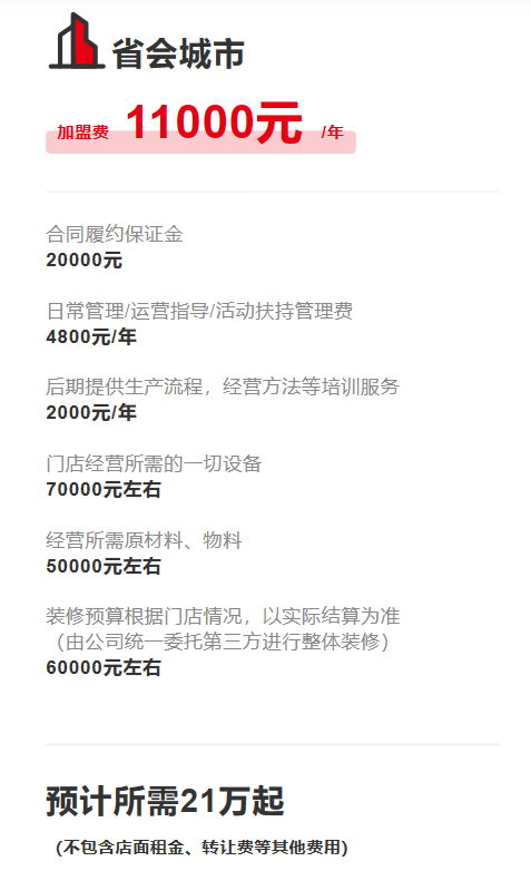 省会城市加盟费为11000元