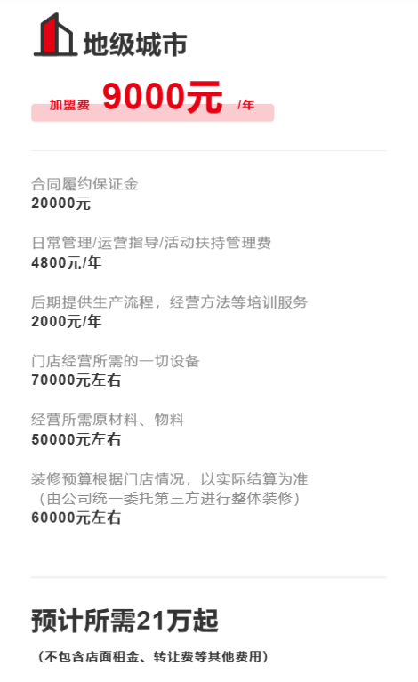 地级城市加盟费为9000元