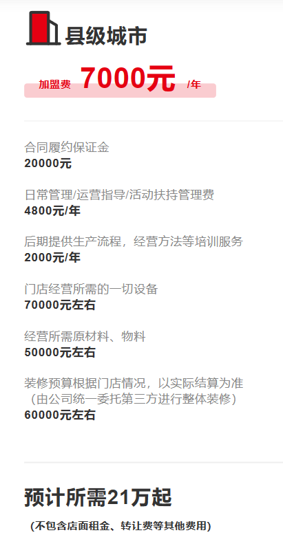 县级城市加盟费为7000元