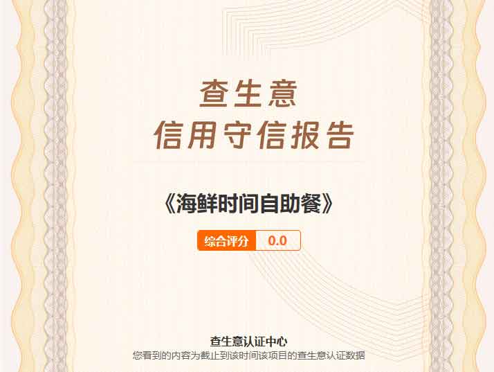 海鲜时间自助餐无专业研发团队、产品单一,加盟评分1.32