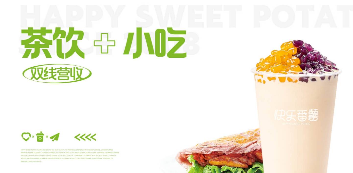 快乐番薯是厦门快乐番薯股份有限公司旗下的奶茶品牌,起源于福建厦门,专业从事番薯、奶茶、水果茶、轻食的研发与销售,把茶与番薯巧妙地融合在一起,独创的招牌薯圆系列奶茶,以其软糯香甜深受广大消费者喜爱。经过十多年的发展,快乐番薯已在全国26个省区扎根,加盟店遍布158个城市。